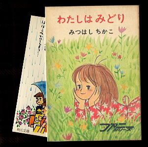 「わたしはみどり」 *しおり付 みつはしちかこ 秋元書房・秋元文庫ファニーシリーズ 昭和49年11月10日発行・しおり付(みつはしちかこ/画) *ファニーシリーズ *収録作品=「みどりの世界」「ただいま思春期」「涙のブンタッタ」「赤いマントの恋人クン」「結婚しちゃお・・・か」 並;紙カバーのため角・フチ部極少すれ、背上ふち部少すれ、カバー下フチ部少しわ有、表紙左下部若干折れ目有、本文の前半20枚ほどの下角部若干しわ、背表紙の中央あたり少しわ (関連ワード: わたしはみどり みつはしちかこ あきもとぶんこ ふぁにーしりーず )