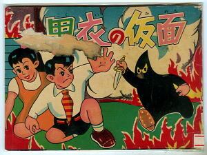 「黒衣の仮面」 *赤本漫画 都おうじ 榎本法令館・えのもとまんが(B6判横) (年版記載なし) *「えのもとまんが」=榎本法令館刊行の赤本漫画。当書は横開きになります *ロック・ホーム似の主人公のミステリー漫画です 並;表紙にハゲ有、裏表紙極少ハゲ、角・フチ部すれ、背下極少欠、背表紙スレ、裏表紙右上角部極少折れ (関連ワード: こくいのかめん みやこおうじ えのもとまんが 赤本 あかほんまんが )