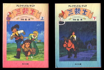 「三銃士 全2巻揃い」 *「アニメ三銃士」アニメ画カバー アレクサンドル・デュマ 竹村猛/訳 角川書店・角川文庫 昭和62年発行の再版 *2冊とも「アニメ三銃士」カバーで、本文も「アニメ三銃士」の画を使ったカラー口絵が各巻2ページずつあります;アニメカバーとアニメのカラー口絵があるのは、この時期の再版本だけです *(上)496頁・(下)480頁 並;紙カバーのため、角・フチ部極少すれ、小口少ヤケ、(上)背上角部すれ・裏表紙右下部若干しわ、(下)背上少痛み・背下角部すれと少しわ・表紙左下角部から本文の前の数枚の下角部少折れ (関連ワード: さんじゅうし 全2巻セット アニメ画カバー カラー口絵 でゅま あにめさんじゅうし ダルタニヤン物語 NHK )
