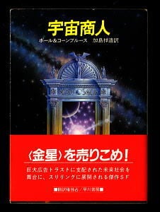 「宇宙商人」 *帯付 フレデリック・ポール&C・M・コーンブルース 加島祥造/訳 佐藤弘之/カバー 浅倉久志/解説18頁 早川書房・ハヤカワ文庫SF563 昭和59年発行の初版、帯付 *巨大広告トラストに支配された未来社会を舞台に、スリリングに展開される傑作SF *浅倉久志「ポールとコーンブルース その人と作品」 並;カバ裏表紙ふち少黄ばみ、カバフチややすれ・角部少すれ、カバ背上ふち少すれ・極少折れ、カバ背中央表面に極々少すれ、帯の表紙側左下角部・裏表紙側右下角部少すれ、本文天少ヤケ (関連ワード: うちゅうしょうにん ふれでりっく・ぽーる C・M・こーんぶるーす かしましょうぞう さとうひろゆき あさくらひさし 企業支配社会 )