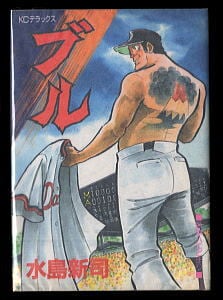「ブル」 水島新司 講談社・KCデラックスKCDX(B6判) 昭和62年発行の初版 *ヤクザの組長の息子で、背中に刺青のある岩田一振がセ・リーグの旭ダイヤモンズで活躍。敵は岩田鉄五郎率いる東京メッツ *「モーニング」昭和57年創刊号より連載 *併録「熱球ハエどまり」(草野球マンガです 「週刊少年マガジン」昭和61年) *全244ページ 並;カバーの上ふち部少しわ、背上フチ部少すれ、背下フチ部極少すれ、後ろ余白ページに若干価格消し跡有、本文の後半下角部若干折れ (関連ワード: ぶる みずしましんじ KCでらっくす 背中に刺青 セ・リーグ 旭ダイヤモンズ プロ野球 )