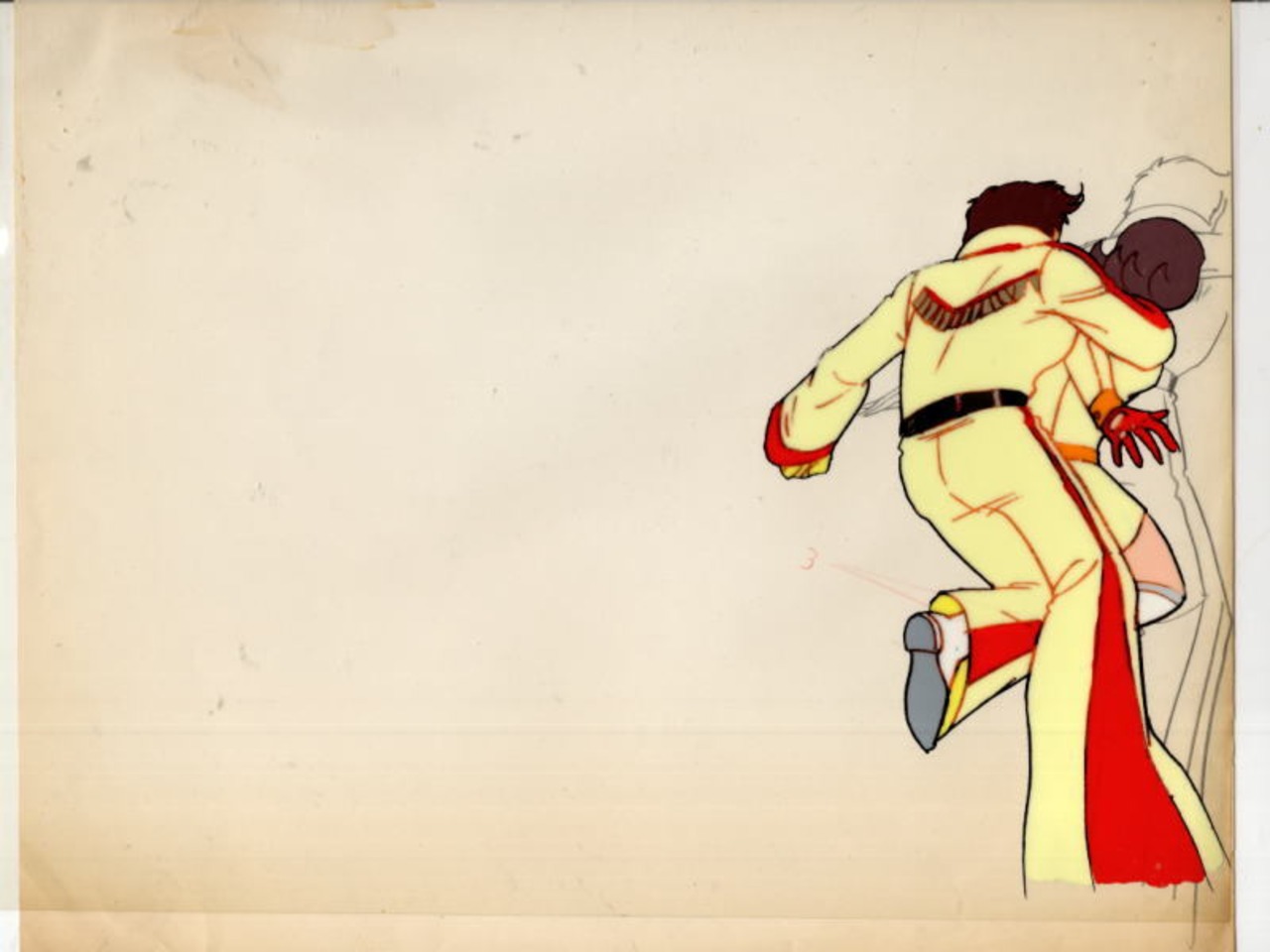 「鋼鉄ジーグ」(東映版)[司馬宙&卯月美和(ミッチー)]の【セル画】 セル画と原画が貼付 背中側 永井豪 安田達矢 JEEG アニメ