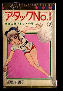 「アタックNo.1(2)」 ビニカバ付 浦野千賀子 集英社・マーガレットコミックスMC22 2巻 ビニールカバー 割れ補修 バレー