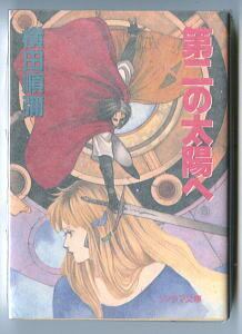 「第二の太陽へ」 横田順彌 米田仁士/カバー・本文イラスト 朝日ソノラマ文庫(よ1-3・544) 1991年発行の初版、「ソノラマ文庫」しおり付 *「空飛ぶ船」の謎を解き、自分の失われた過去を明らかにするため、星ムササビを友に流浪の旅を続ける少年剣士ハヤト 並上;カバ背上ふち極少シワ