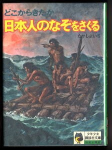 「どこからきたか 日本人のなぞをさぐる」 たかしよいち 武部本一郎/カバー画・本体の表紙画と裏表紙画・挿絵 松下紀久雄/挿絵 少年少女講談社文庫(緑背・B6判) 昭和50年発行の再版・カバー付 *児童書ですので、挿絵・写真・図版多数有 *巻頭に2色カラー口絵有 *少年少女講談社文庫の緑背 並;背上しわ、天部少汚れ、カバーの角・フチ部極少しわ、表紙右上部若干しわ、後ろソデの下フチ部少しわ、後ろ折り返し上部痛み